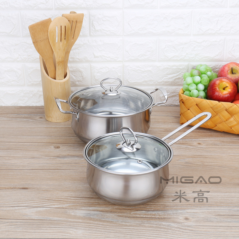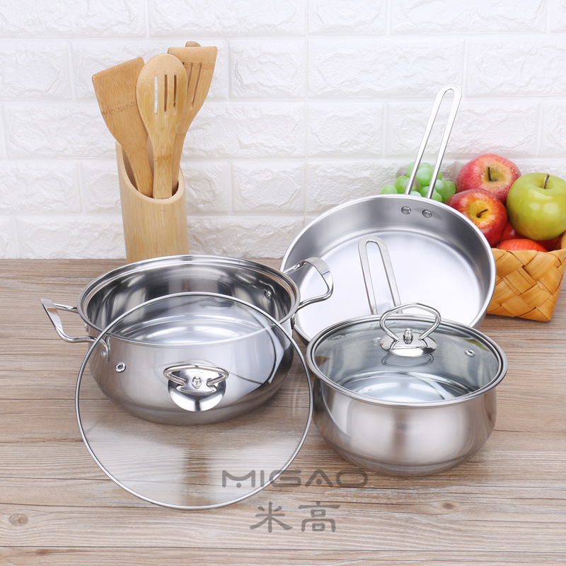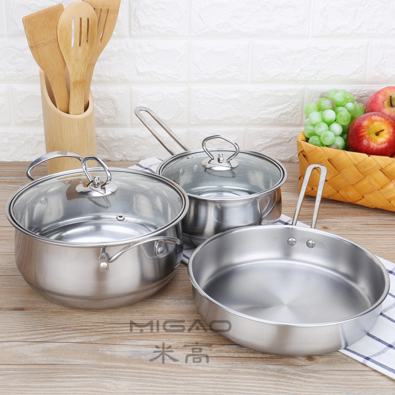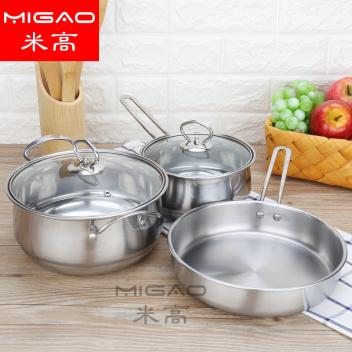 • 商品名称:加厚不锈钢三件套装锅具 精美礼品三件套锅奶锅双柄汤锅平底煎锅(银色)