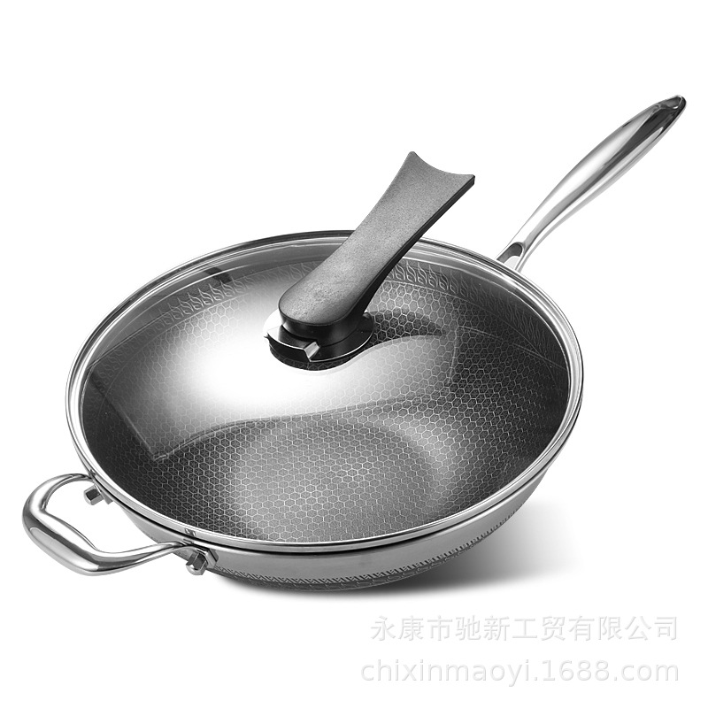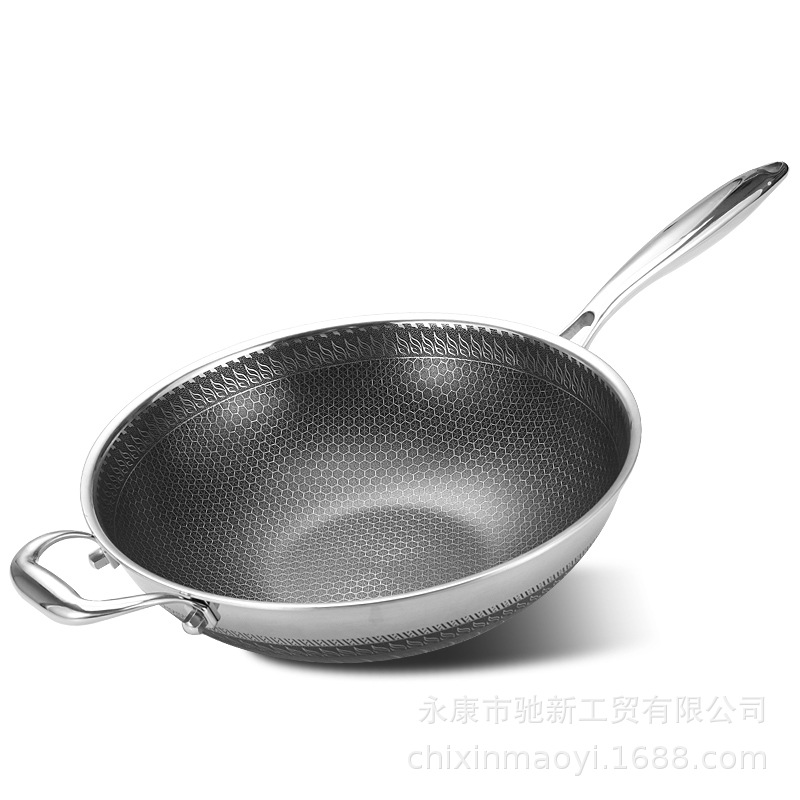 • 商品名称:304双面全屏不锈钢炒锅 无油烟不粘锅 平底炒菜锅电磁炉通用锅具(银色)