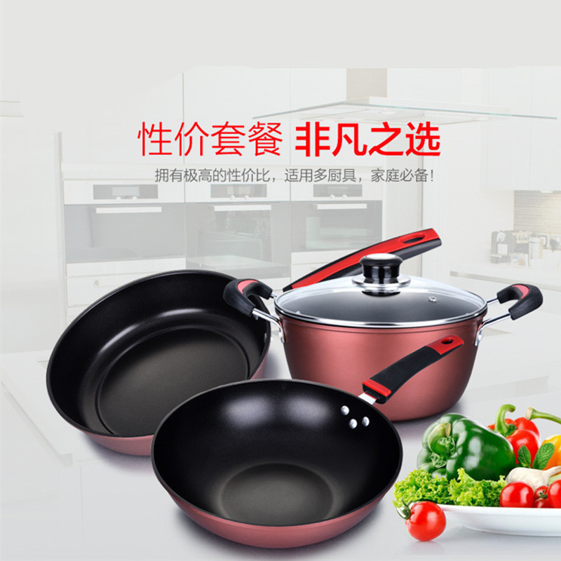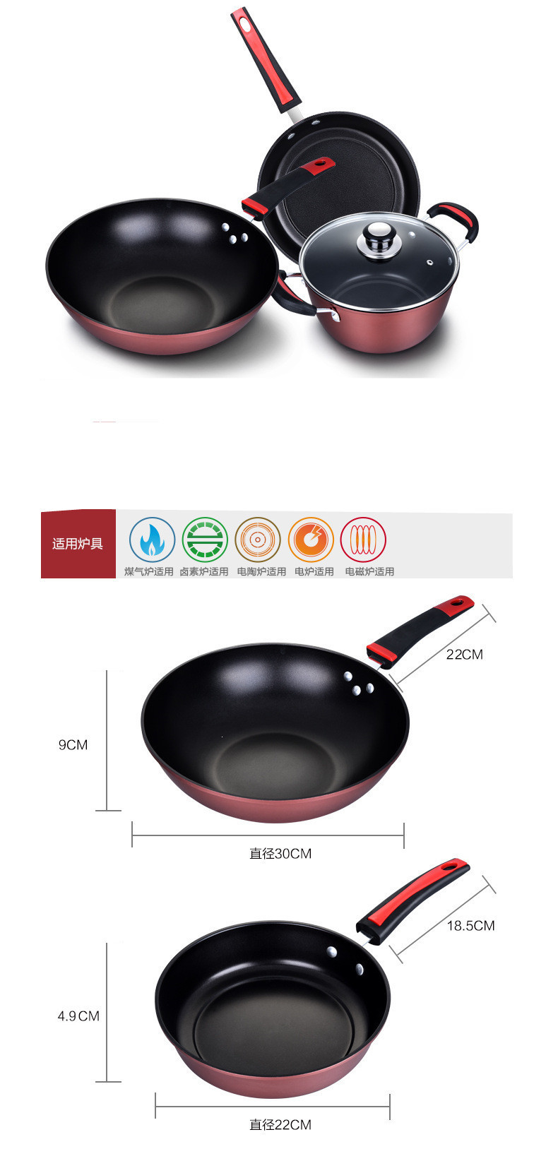 >  锅具套装 不粘锅 炒锅锅具三件套 旺旺铸铁套锅 银行保险礼品(红色)