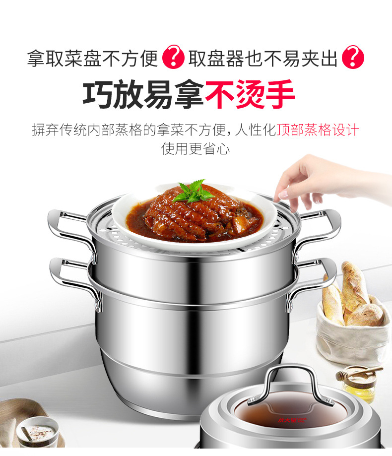 • 商品名称:炊大皇蒸锅304不锈钢三层30cm加厚复底家用蒸馒头锅具电磁炉通用(银白)