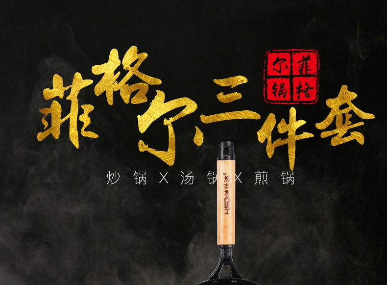• 商品名称:锅具套装百年传承老铁锅炒锅平底不粘锅家用老手工铁锅锅套装(黑色)