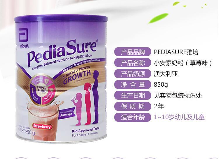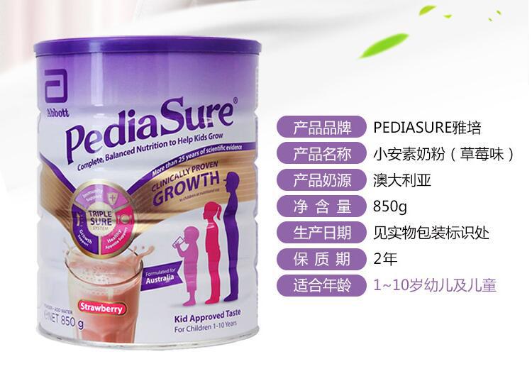 • 商品名称:澳洲进口奶粉 巧克力味草莓味小安素儿童奶粉850g 罐装奶粉(2段)