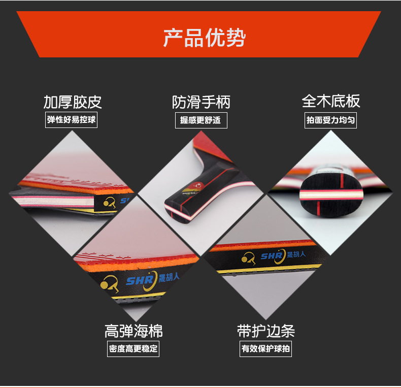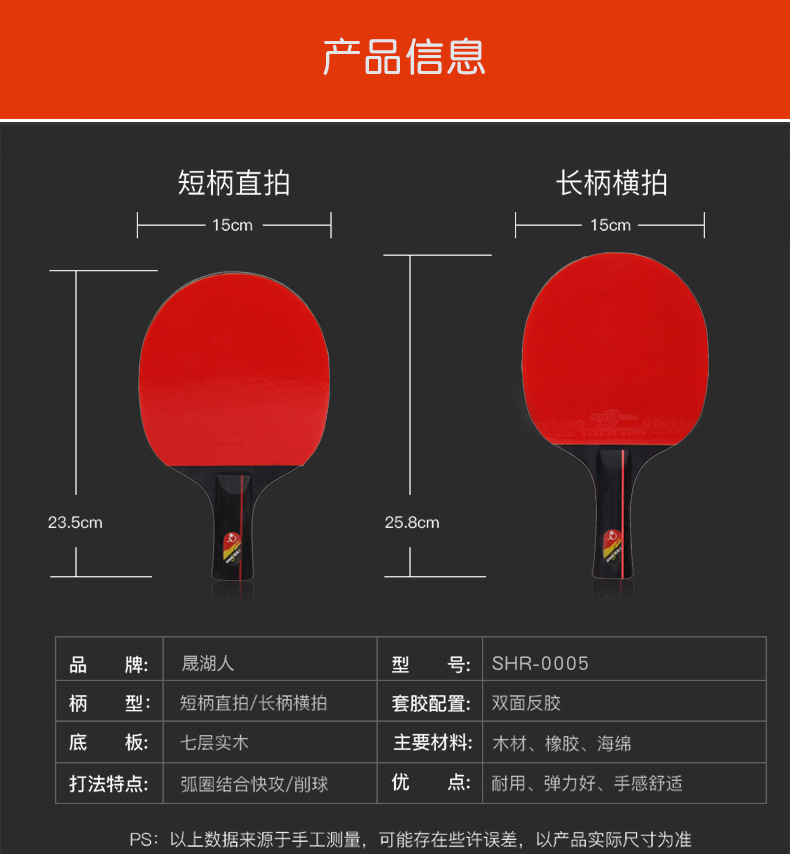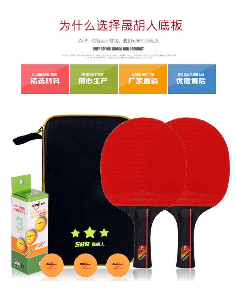 • 商品名称:晟胡人正品乒乓球拍套装成人初学者兵乓球成品直拍横拍学生2只装(红色)