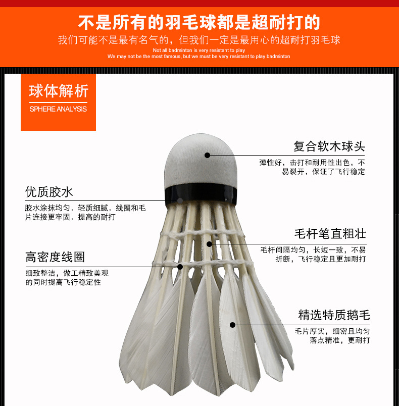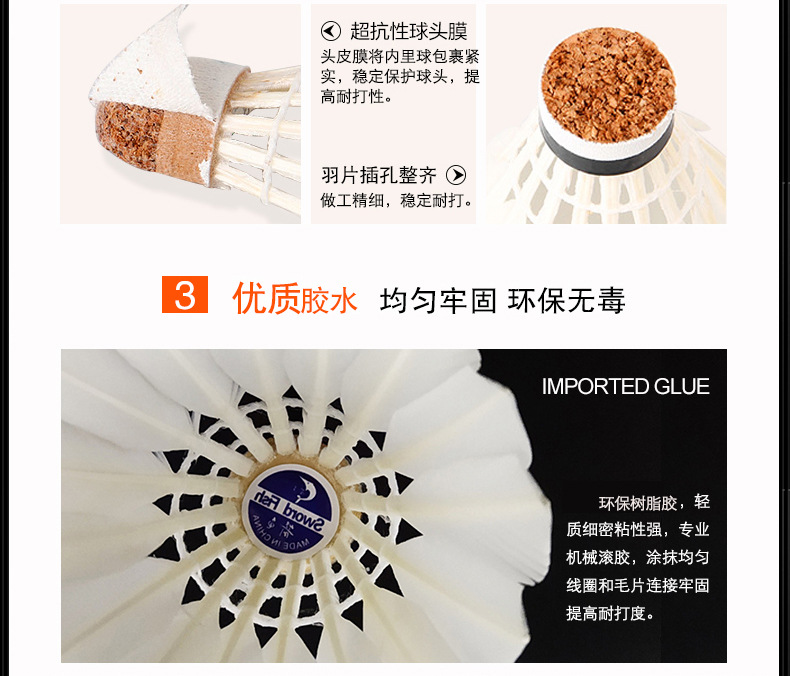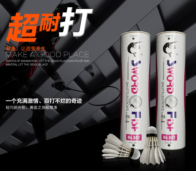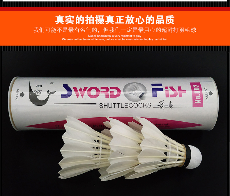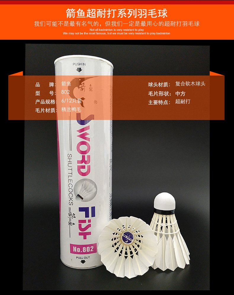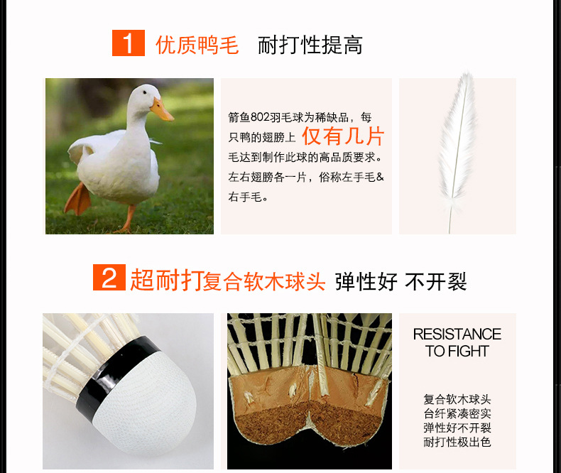 • 商品名称:箭鱼802羽毛球耐打王水鸭中方娱乐训练球12只装打不易烂(白色)