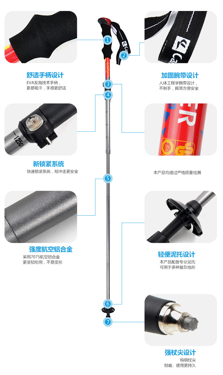 • 商品名称:户外轻便外锁5节折叠登山杖7075铝合金便携超短徒步手杖拐杖装备(黑色)