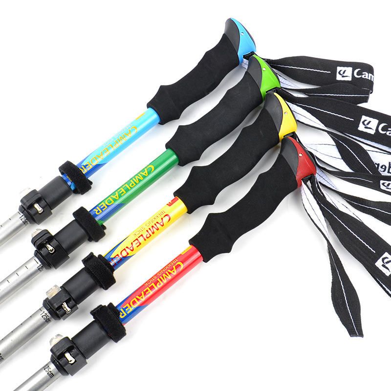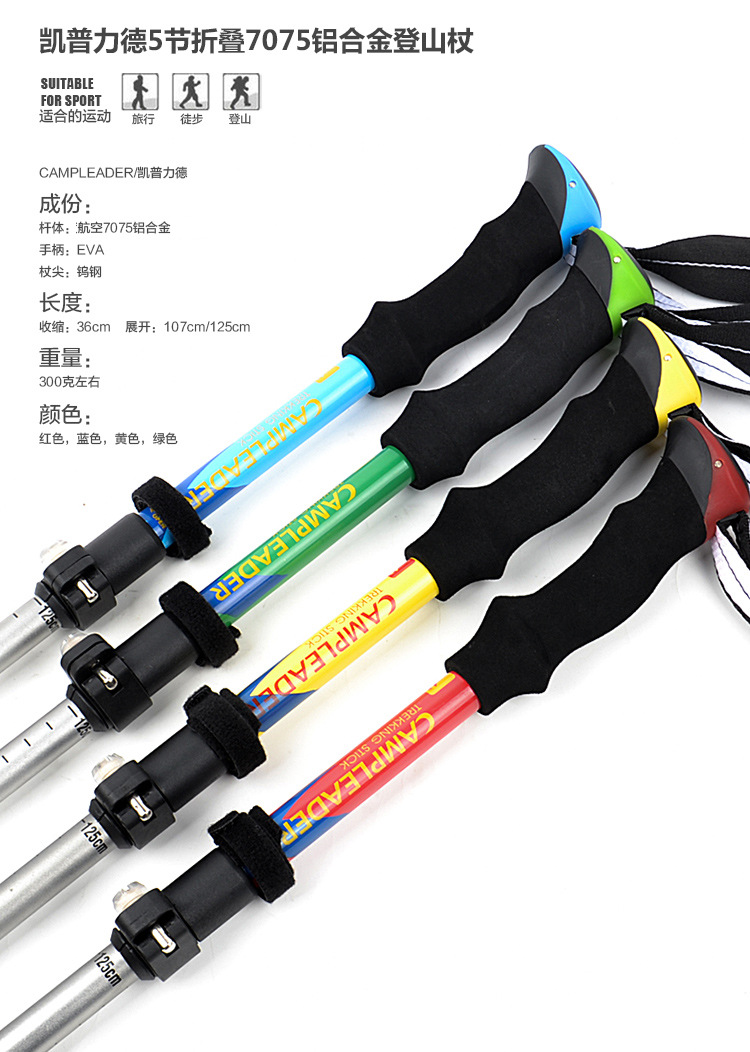 >  户外轻便外锁5节折叠登山杖7075铝合金便携超短徒步手杖拐杖装备(黑色)