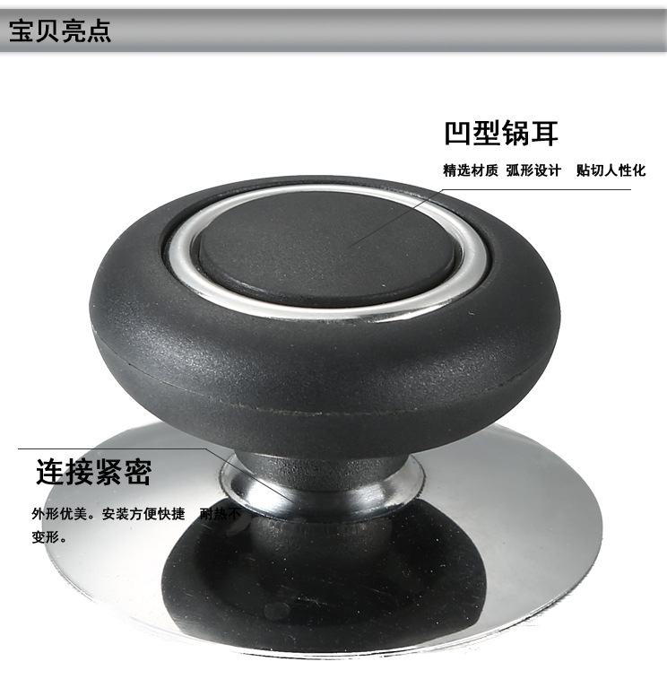 • 商品名称:西式锅盖头顶珠 防烫锅盖把手手柄 通用厨房锅盖配件耐热不变形(黑色)