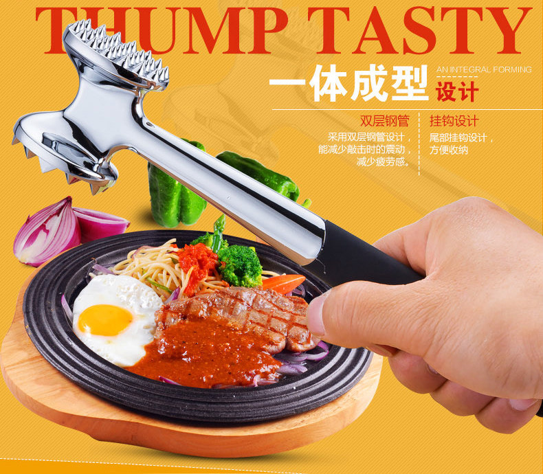 >  创意迷你锌合金肉锤 牛排工具 硅胶柄猪排锤 松肉器 厨房小配件(白色方)