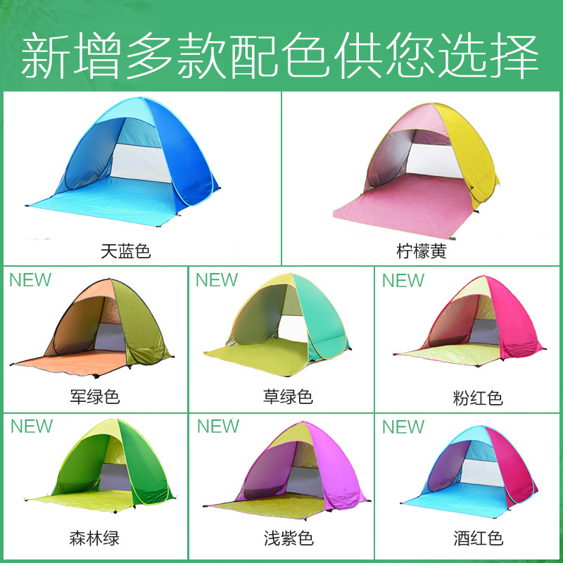 >  双人折叠自动野营户外用品沙滩帐篷草坪免搭速开钓鱼帐篷(拼色)