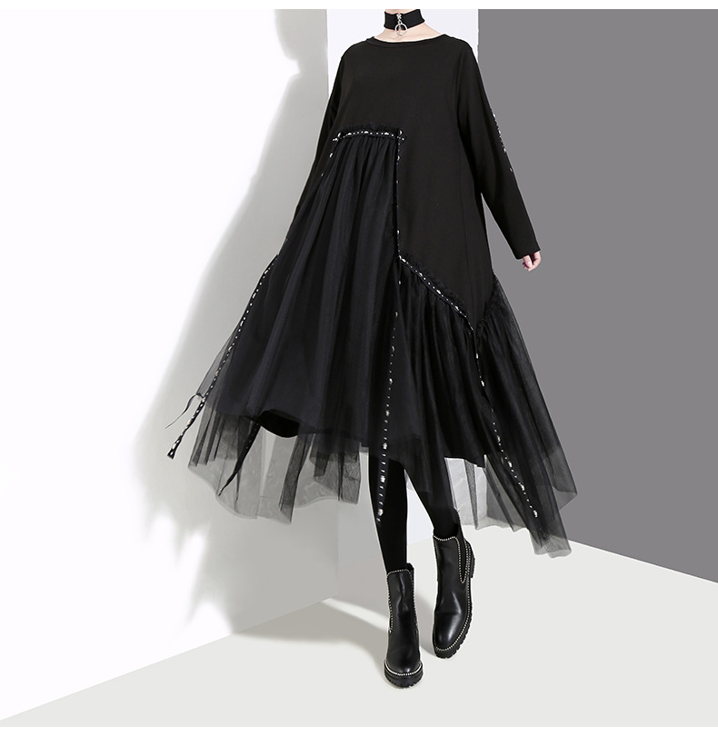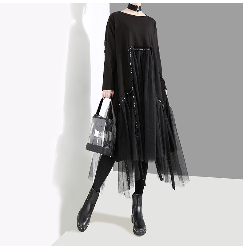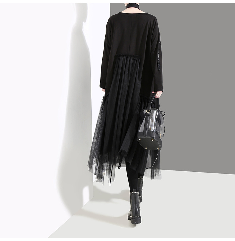 跨境2019c春夏季新款欧美女装黑色潮流连衣裙网纱大摆裙子4564(170/100A(L))