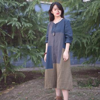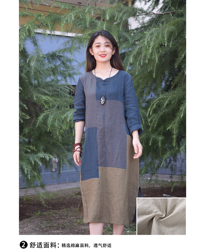 • 商品名称:2018新款连衣裙 水洗亚麻拼接撞色连衣裙 宽松舒适简单上衣(170/100A(L))