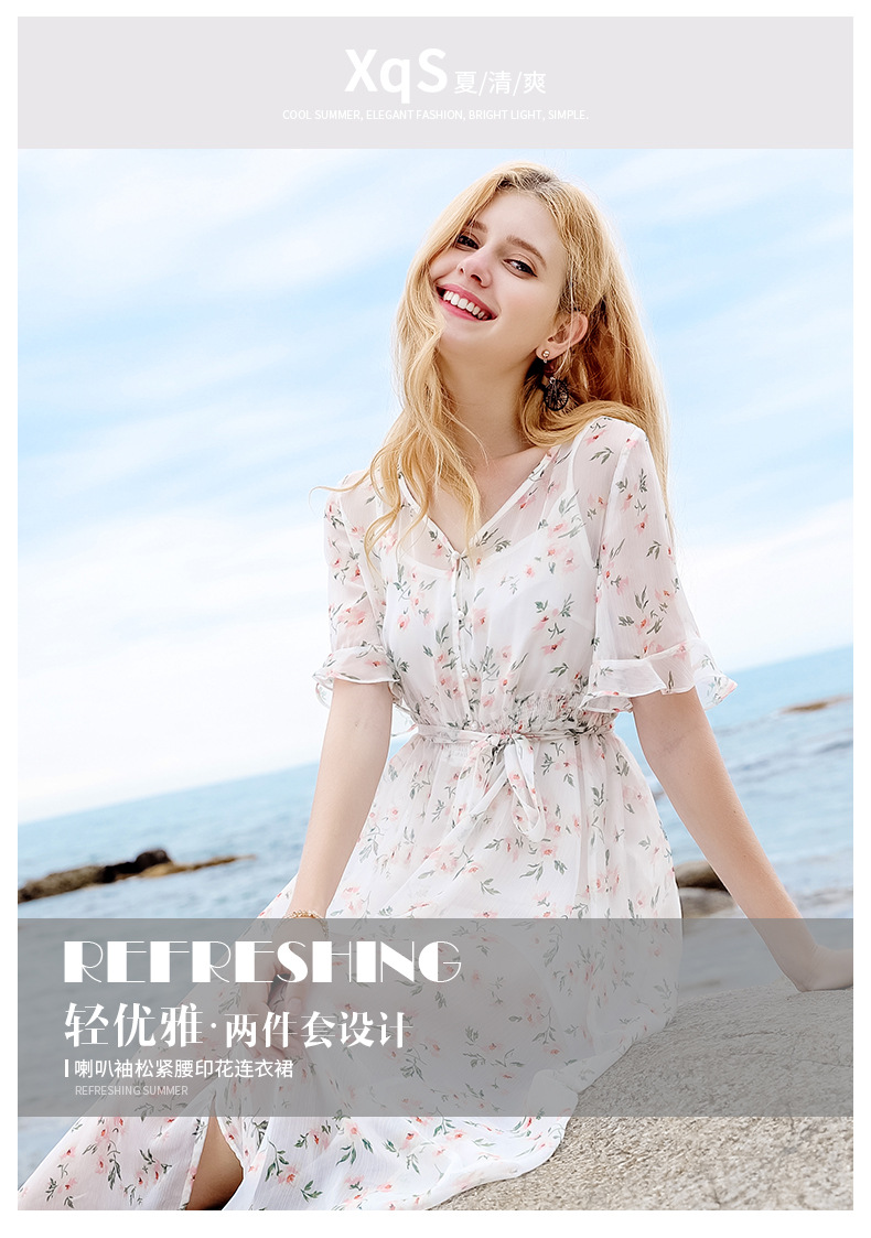• 商品名称:2019夏季新款品牌女装喇叭袖碎花裙chic淑女印花雪纺连衣裙(170/100A(L))