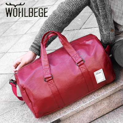 >  wobag旅游包跨境时尚户外旅行包 手提多功能健身包大容量PU男包(红色)