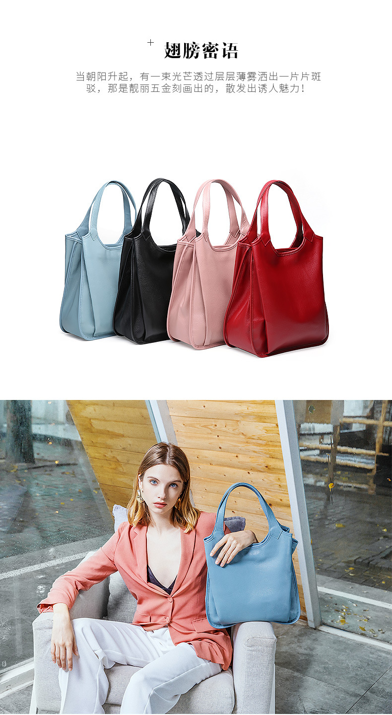 • 商品名称:头层牛皮包女士手提包夏新款欧美时尚托特包真皮女包单肩斜挎包(蓝色)